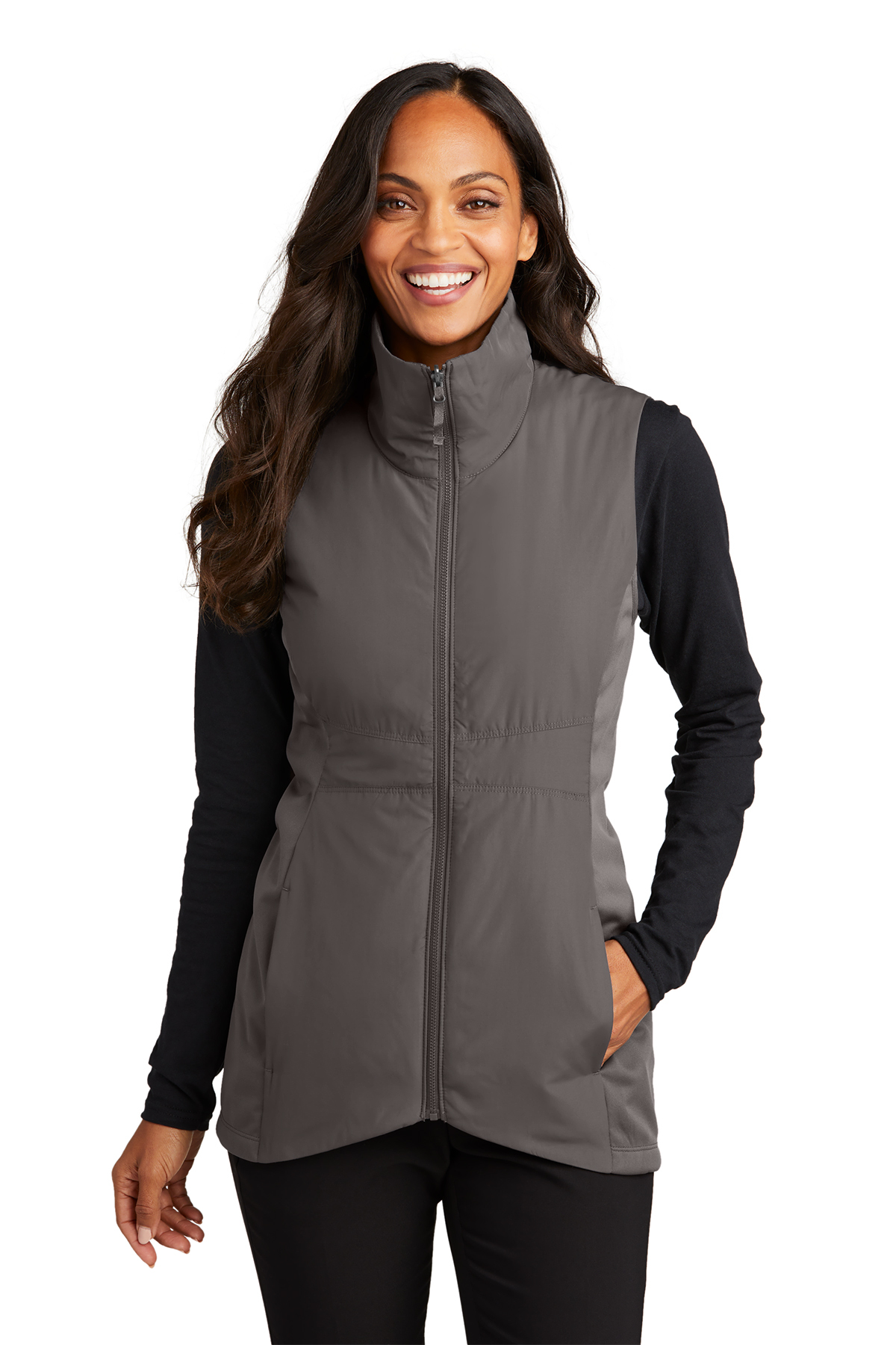 Insulation and stretch soft shell side panels make this vest a versatile, flattering and cozy cold-weather layer.